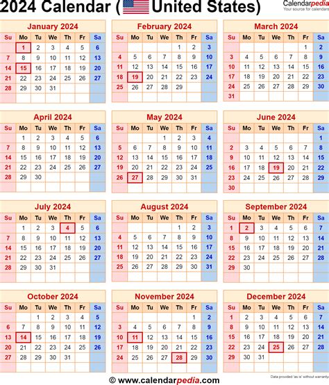 2024 United States Calendar with Holidays from www.generalblue.com— www.generalblue.com